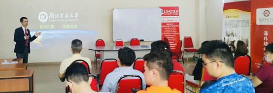 教育推介与专业培训由林肯大学学院副校长Kelvin Tong博士主持,MK平台田野博士以《开放的世界,与开大同行》为题,对湖北开放大学进行了专题推介,重点介绍了学校的办学理念以及软件技术、机电工程和人工智能等特色专业(群)建设情况,并基于学校传统的工科强项专业,以《如何用人工智能提升企业竞争力》为主题,为学生提供了针对性的培训课程。