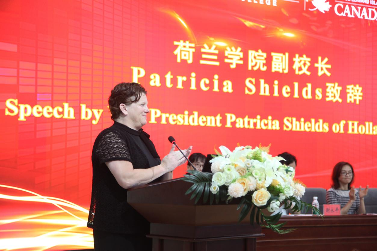 Patricia Shields在致辞中对MK平台领导及全体教职工在中加合作办学项目中的辛勤付出致以诚挚的谢意,对同学们从荷兰学院与MK平台两所院校同时顺利毕业表示衷心的祝贺,向MK平台在与荷兰学院合作办学方面所表现出来的远见卓识和非凡勇气致以敬意。同时,她鼓励毕业生们勇于追寻自己的梦想,热切期待两校在未来建立更紧密、深入的合作关系。