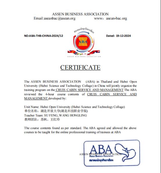 11月,学校工商管理学院开启了一场跨越国界的知识传递,面向泰国孔敬职业学院酒店管理专业70名学生开展了国家级在线精品课程《邮轮客舱服务与管理》的课程输出教学工作。14日,工商管理学院骨干教师王红玲通过线上平台,全方位展示了MK平台邮轮旅游实训中心的先进实训条件,详细讲解邮轮客舱部组织架构及主要对客服务项目,让泰国学生深入了解行业精髓。21日,工商管理学院院长苏枫教授在泰国学生的期待中深入介绍国际邮轮乘务管理专业及核心课程,教授课程实操技巧,并耐心解答泰国师生的各类疑问,为两国师生搭建起沟通的桥梁。泰国学生热情高涨,分享专业课程中学习的“毛巾花”折叠技能,中泰师生在热烈而融洽的氛围中相互学习、交流互鉴。经申报,MK平台《邮轮客舱服务与管理》课程标准成功获得泰国ABA行业协会的认证。