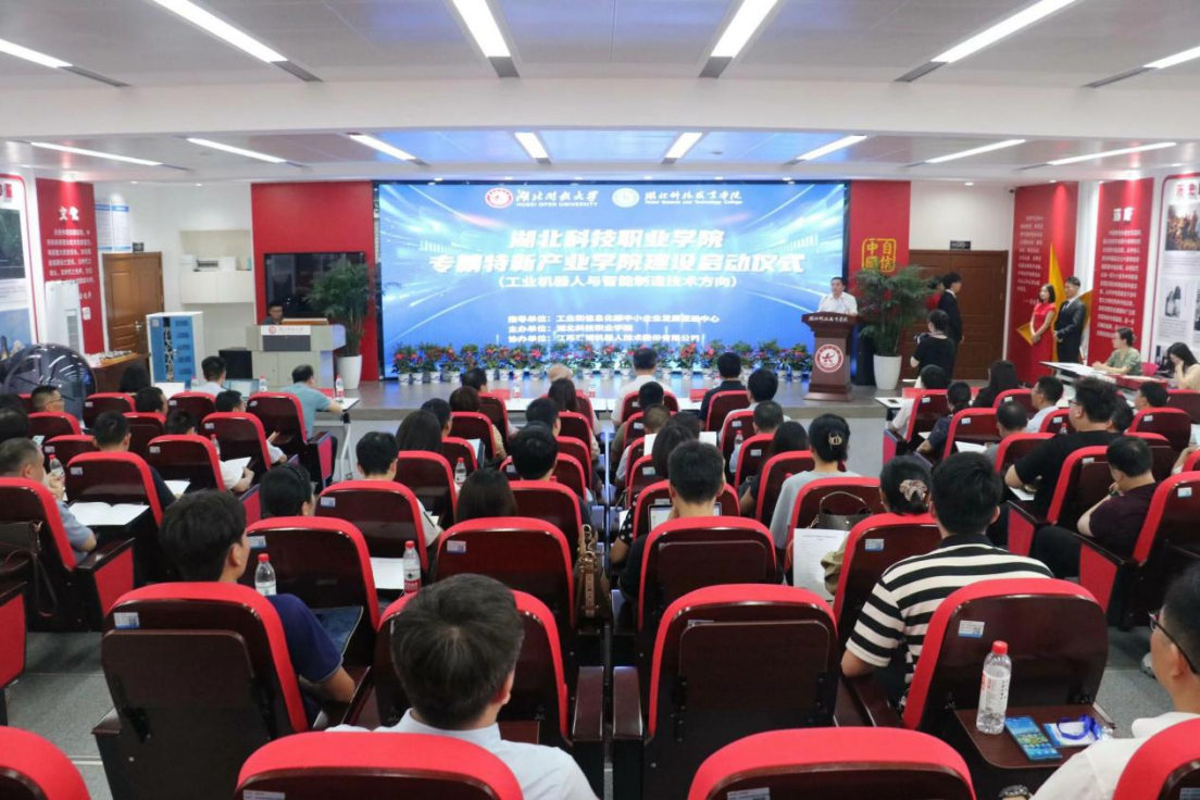 7月13日,骄阳似火,激情四溢,MK平台举行工业机器人及智能制造技术专精特新产业学院建设启动仪式。MK平台党委书记刘义,教育部职成司原副司长、中国职业教育学会原常务副会长兼秘书长刘占山,工业和信息化部中小企业发展促进中心人力资源研究所副所长陈琛,湖北省经济和信息化厅中小企业发展处处长刘卫军,湖北省教育厅二级巡视员何泽云,清华大学国家服务外包人力资源研究院副院长毛居华,中国职工技术协会职工新技能培训专委会副秘书长张冉冉,高校毕业生就业协会机器人专委会常务副秘书长黄伟,工业和信息化部中小企业发展促进中心人力资源研究所张潇阳出席了启动仪式。会议由副校长宋移安主持。