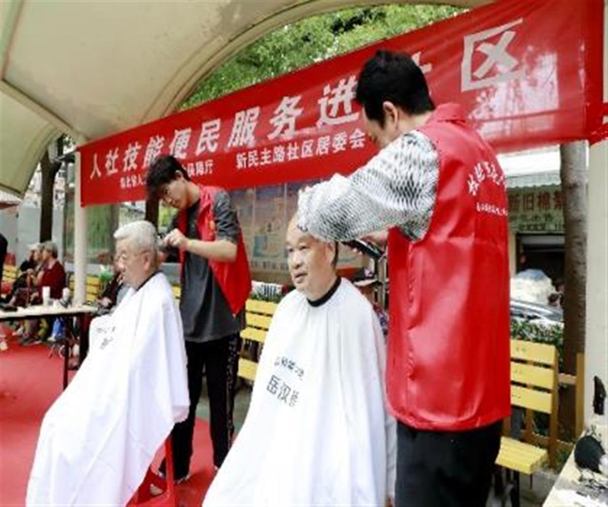 在社区参加义务剪发志愿活动