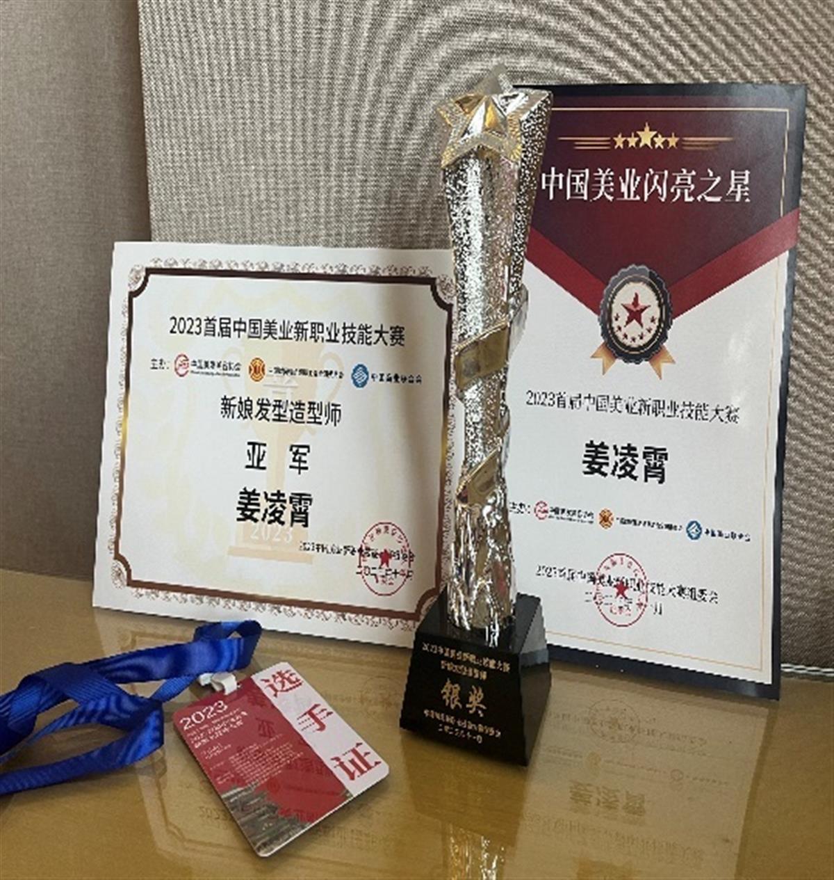 姜凌霄荣获2023年首届中国美业新职业技能大赛新娘发型造型师组亚军