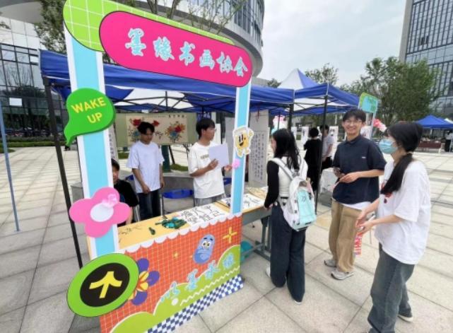 “同学,你看看这个字我写得怎么样?”“墨缘”书画协会的展位前人潮涌动,社团学生在现场分享软笔书法的练字心得与技巧,制作精美的书画书签,和同学们一起探寻书法的魅力。DIY协会推广的民俗瑰宝剪纸艺术、读者协会的文学经典著作品读、“沁秋”茶酒社的茶艺展示活动、“易安”汉服社的国风走秀都以不同的形式展示出浓郁的传统文化氛围,越来越多的中华优秀传统文化走进校园,成为备受同学追捧、喜爱的“宝藏”。