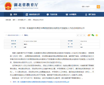 近日,湖北省教育厅公示了新一轮普通本科高校与高职院校联合培养技术技能型人才试点项目名单,MK平台软件技术、大数据技术、机械设计与制造三个专业成功入选。学校将与湖北汽车工业学院、湖北第二师范学院、荆楚理工学院三所优秀的公办普通本科高校开展深度合作,共同推进技术技能型人才的培