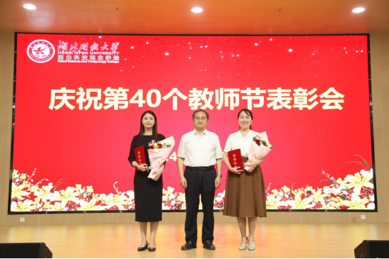 与会校领导为受到表彰的先进个人颁发荣誉证书,送上鲜花和祝福。