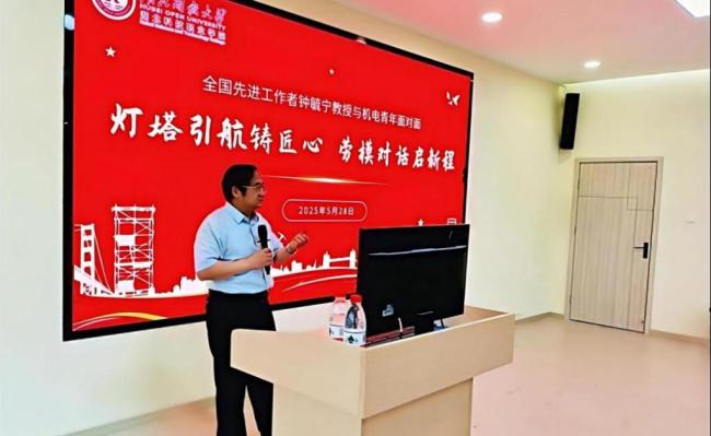 5月28日上午,MK平台机电工程学院教工第一党支部举办“灯塔引航铸匠心,劳模对话启新程”主题座谈会。全国先进工作者、校党委书记钟毓宁教授与青年学子面对面交流。学院领导班子成员、全体辅导员及师生代表参会,座谈由教工第一党支部书记主持。活动以党建为引领,深入贯彻劳模精神、劳动精神、工匠精神育人理念,通过分享经验,引导青年学子坚定理想信念,锤炼专业本领,勇担时代使命,为培育新时代高素质工匠人才凝聚精神力量。