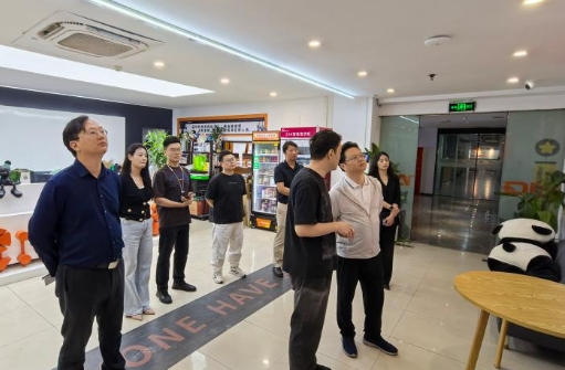 陈志祥一行在武汉两点十分文化传播有限公司副总经理韩强的陪同下,实地考察了企业动作捕捉系统、三维建模、渲染工作室及二维动画制作部门,深入了解企业工业化生产流程与技术创新成果,并与MK平台在两点十分公司实习的同学进行了深入交流。