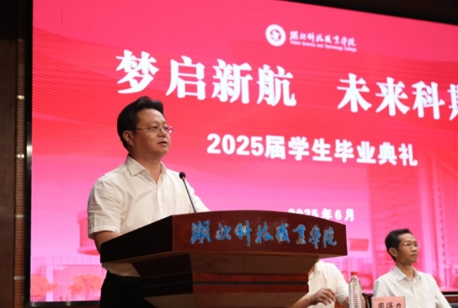 “笑一个吧,功成名就不是目的,让自己快乐这才叫作意义……”伴随着动人的歌声,大屏幕上闪过一帧帧2025届毕业生们在湖科的瞬间,晨读的教室、热闹的社团活动、操场上奔跑的身影、实训室熬夜备赛的灯光……当那句“热烈的不是青春,是青春的我们”从视频中响起,不少毕业生眼眶泛红,那些并肩追梦的超燃瞬间,在心底掀起层层涟漪。受邀出席的家长代表看着屏幕里孩子成长蜕变的轨迹,纷纷向学校致谢,言语间满是欣喜与感动。