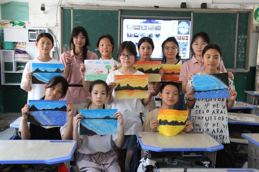 彩绘课堂上,实践队员为孩子们准备了水彩、蜡笔等丰富的绘画工具,以“我的奇思妙想”等主题为切入点,通过展示优秀绘画作品、讲述创作思路,激发孩子们的艺术灵感。实践队员从色彩搭配原理、构图技巧入手,进行分步示范与指导,孩子们则大胆挥动画笔,将心中的奇思妙想跃然纸上,有的描绘出人与动物和谐共处的温馨画面,有的勾勒出充满科技感的梦幻世界。一幅幅色彩绚丽、创意十足的作品,不仅展现了孩子们独特的艺术视角,更让他们在自由创作中释放情感、表达自我。