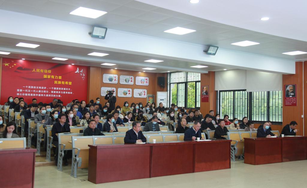 校长钟毓宁,纪委书记张文凯,副校长宋移安、汤春来,党委常委张化斌、李宜兵;党委委员、校纪委委员,副处级以上领导干部,教师代表参加学习。