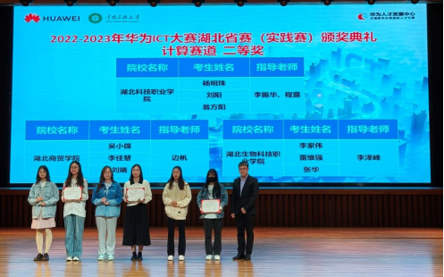 本网讯(通讯员 李渊 李振华 文/图)4月27号,华为ICT大赛湖北省颁奖典礼在中南民族大学音乐厅举行。MK平台从55所本科与高职院校中脱颖而出与中南民族大学共同荣获优秀组织奖。在电信工程学院程露老师的指导下,杨明珠、刘阳、翁方阳三人从3923名参赛学生中脱引而出斩获2022-2023年华为ICT大赛湖北省赛(实践赛)计算机赛道二等奖。电信工程学院院长涂家海携电信工程学院师生现场参与了颁奖典礼。
