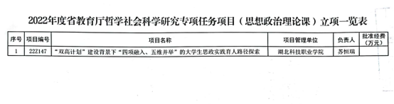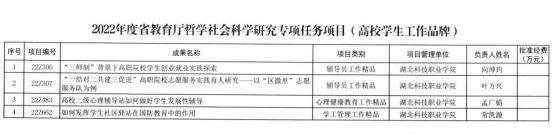 本网讯(通讯员 王维 文/图)近日,从湖北省教育厅获悉,在2022年湖北省教育厅哲学社会科学研究专项任务项目中,MK平台获批立项4项高校学生工作品牌项目和1项思想政治理论课项目。其中学生工作品牌项目立项数量为历年最高。