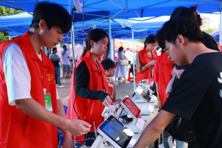 当迎新日与下雨天撞个满怀,却丝毫没有影响到志愿者们给新生提供热情周到、耐心细致的迎新服务,接送新生、搬运行李、指引流程、介绍校园、解答疑问,校园内处处都有“红马甲”们忙碌的身影。不顾瓢泼大雨,不管汗流浃背,志愿者们始终坚守在迎新工作的各个岗位,他们用最美的笑容和最周到的服务,向初入大学校园的新同学展现“热情湖科”,让他们真真切切地感受到家的温暖。