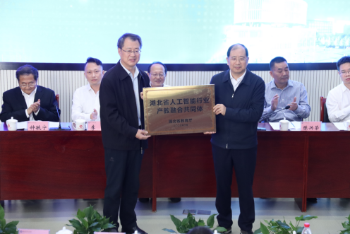 在全体与会代表共同见证下,张幸平代表湖北省教育厅向湖北省人工智能行业产教融合共同体授牌。共同体将以人工智能大模型、智能语音等人工智能技术为支撑,服务智能制造、智能商务、智能健康、智能教育、智能养老、智能政府、智慧城市等多个人工智能领域。