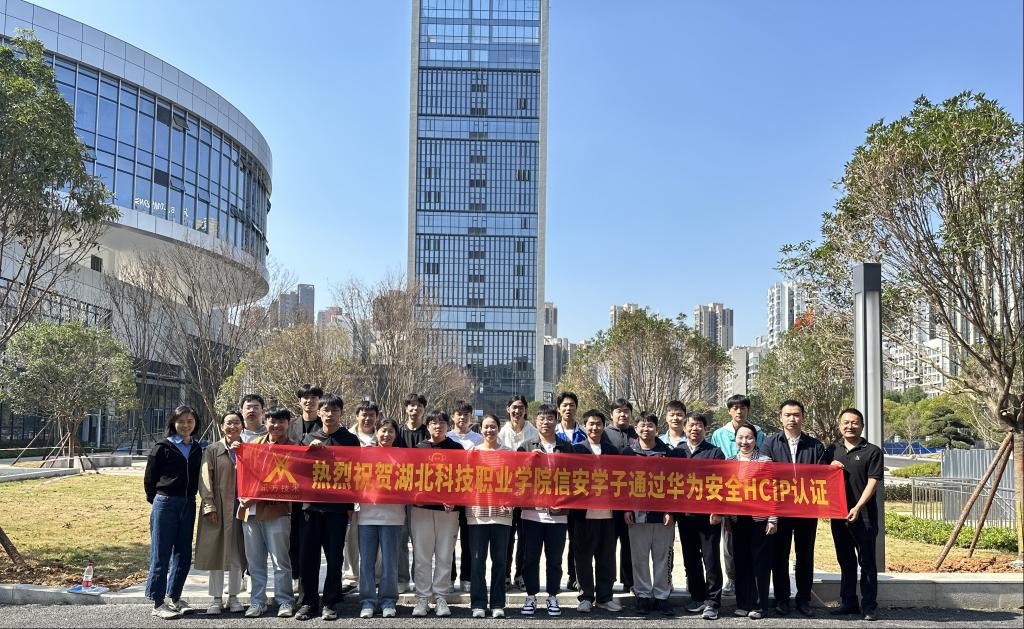 学校高度重视产教融合、校企合作,是湖北首家“鲲鹏产业学院”建设单位,日前牵头成立了湖北省人工智能产教融合共同体,此次HCIP-Security(安全)高级工程师的培训及认证结果既彰显了校企合作成果也初步展示了共同体成员单位的合作效力。未来,电信工程学院将以“鲲鹏产业学院”以及湖北省人工智能产教融合共同体建设为契机,进一步深化产教融合、校企合作,在人才培养、师资共育、课程开发、技术服务等方面与龙头企业以及兄弟院校通力合作,为湖北省信息技术产业发展贡献新的更大力量。