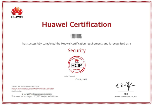 本网讯(通讯员 朱珺 王宇豪 文/图)10月19日,2023年HCIP-Security(安全)成绩新鲜出炉,MK平台电信工程学院信息安全技术应用专业20名参加认证的学生取得优异成绩,全员通过认证并获得HCIP-Security(安全方向)高级工程师证书。