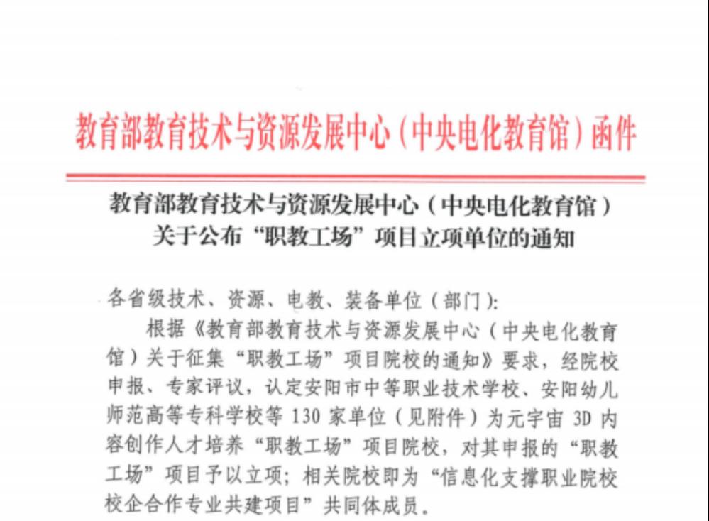 本网讯(通讯员 刘超 文/图)近日,教育部教育技术与资源发展中心(中央电化教育馆)下发《关于公布“职教工场”项目立项单位的通知》,MK平台成功获批元宇宙3D内容创作人才培养“职教工场”项目立项单位,同时也成为“信息化支撑职业院校校企合作专业共建项目”共同体成员。