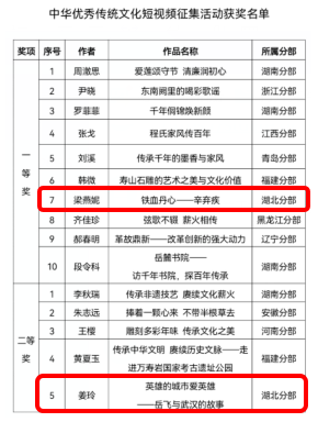 本网讯(通讯员 黄雷 文/图)11月29日,国家开放大学举办的中华优秀传统文化短视频征集活动圆满落幕,湖北分部荣获一等奖1个、二等奖1个。