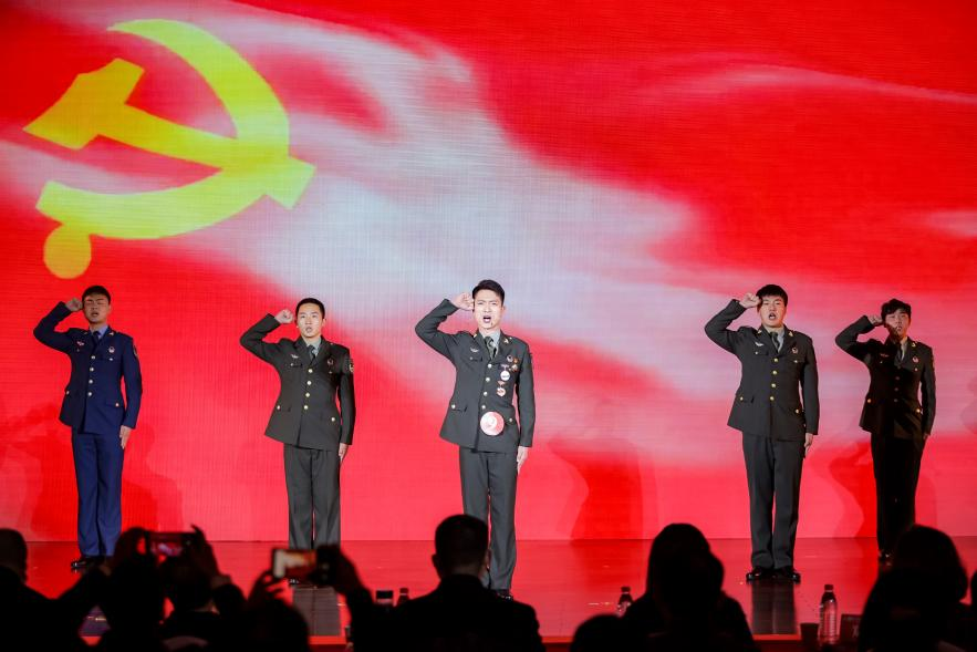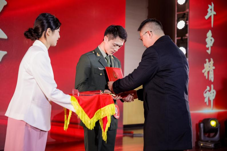 比赛现场,王磊同学以“从军行”为主题,讲述了他从学校应征入伍,服役于驻香港部队某特种作战营的奋斗故事,字字真情,掷地铿锵,展现出了中国军人的飒爽英姿。服役期间,他所在单位被习近平总书记授予“香港驻军模范特战连”荣誉称号。如今戎装虽褪,但报国心不泯。他的一句“我始终记得退役仪式时在军旗下庄严的承诺:若有战,召必回!”博得了现场如雷般的掌声。展示环节中,当舞台上的集结号响起时,MK平台五名来自不同兵种的退役士兵代表在舞台上迅速集合,他们的庄严宣誓,演绎出新时代青年一朝从军报国,一生坚守本色的决心,再次感动全场。