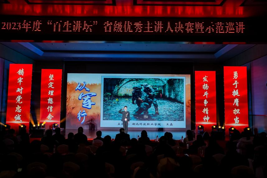 2023年5月,团省委、省学联下发了关于在全省高校团学组织中持续深化“百生讲坛”学习宣传贯彻习近平新时代中国特色社会主义思想活动的通知。校团委积极响应、精心组织,经班—院—校层层遴选推荐,经济贸易学院的王磊同学从各级赛事中脱颖而出,并以分赛区第一名的好成绩入围了省级决赛暨示范巡讲活动。备赛过程中,经贸学院领导老师反复打磨文稿,进入决赛后共同精心制作背景视频,排练情景展示环节,力求达到最佳表现效果,在省级舞台上展现湖科学子风采。