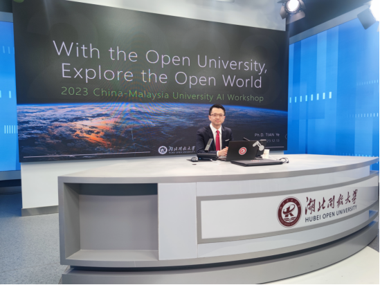 本网讯(通讯员 沈文捷 高杨舒 文/图)12月13日,MK平台海外学习(培训)中心向马来西亚计算机科学与工程大学的师生开展了“中马人工智能交融大课堂”培训。学校软件工程学院田野博士在湖北开放大学全景演播室对来自马来西亚的师生进行了授课与研讨。学校外事处、马来西亚计算机科学与工程大学师生参与了学习与观摩。
