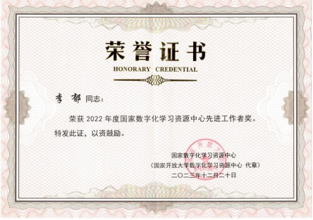 此次获奖得益于学校的高度重视、精心组织和广大教师的潜心钻研、精心准备。湖北开放大学作为国家数字化资源中心湖北分中心,以服务湖北省终身教育与学习型社会构建为目标,积极发挥区域辐射作用,不断探索创新,紧紧围绕学校发展战略,大力推进各类优质数字化学习课程资源的整合汇聚,积极面向社会公众开放共享优质教育教学资源。今后,湖北分中心将继续努力,致力于探索分中心资源共建共享模式,加强优质学习资源的开发与应用。