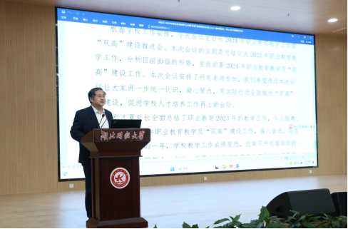 校长钟毓宁作总结讲话,他向为学校教育教学工作付出辛勤努力的老师们表示感谢,向受到表彰的单位和个人表示热烈的祝贺,同时对2024年教育教学工作提出三个方面的要求:一是切实推动学校高质量发展的信心和决心。既肯定2023年的成绩与突破,又要正视自身不足,2024年要在“双高建设”、技能大赛、教师教学能力、品牌校园等方面再创佳绩。二是着力在提升发展能级规模上攻坚突破。要充分理解现代职业教育体系内涵、准确把握推进“三融”、加快提升职业教育的服务发展能力、进一步推进MK平台职业教育数字化、国际化。三是开创学校教书育人工作新局面。以成果为导向加强教学中心地位、以项目为抓手改善育人环境、以强校战略为引领提升师资队伍水平。