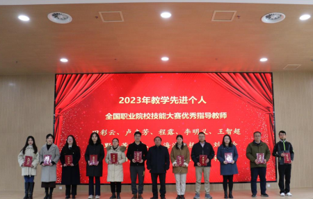 会上,宋移安宣读《关于表彰2023年度职业教育教学工作先进单位和个人的决定》。校领导分别为获奖单位和个人颁发奖牌和荣誉证书。