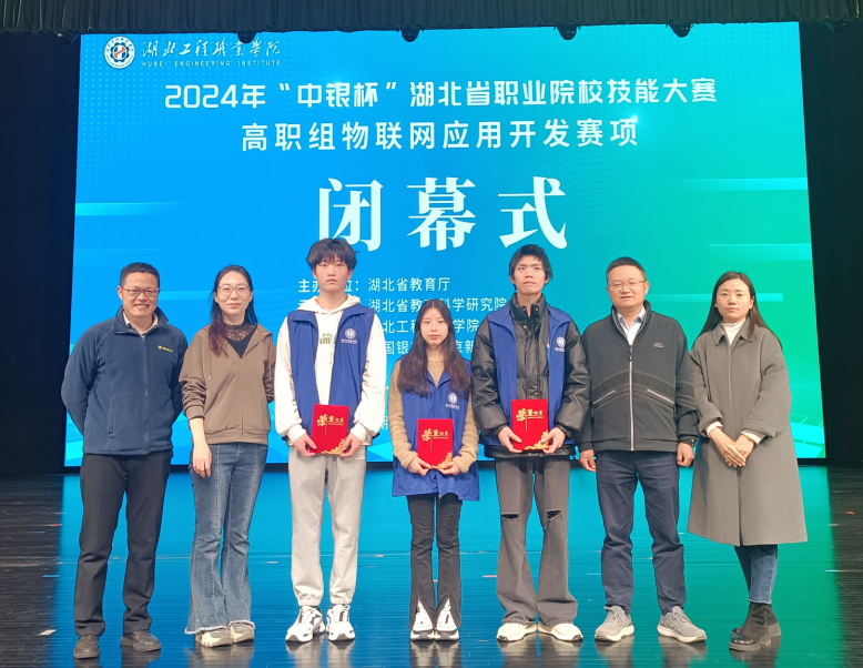 本网讯(通讯员 吴珂/文 鲍毅/图)2024年湖北省职业院校技能大赛高职组物联网应用开发赛项于3月18日至22日顺利举行。MK平台物联网应用技术专业2022级学生毛长武、李奕欣组成的推荐队获推荐组一等奖(排名第二),方勋、鲁思芸组成的抽测队获抽测组二等奖(排名第十);物联网应用技术专业教师鲍毅、刘瑞北获教师组三等奖;鲍毅、刘瑞北获优秀指导教师奖。