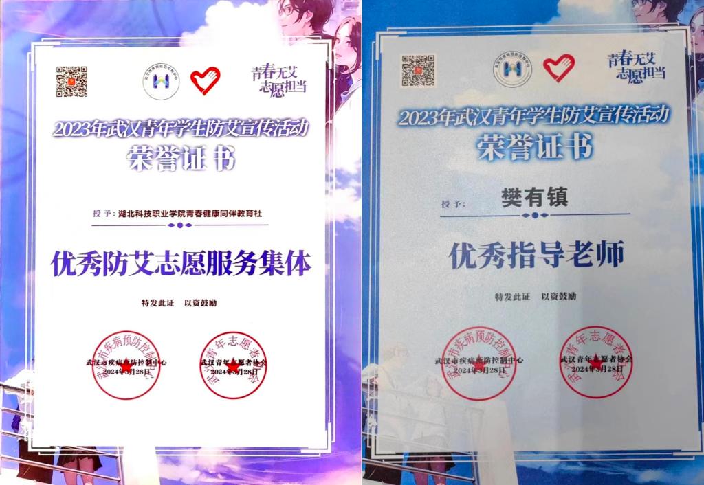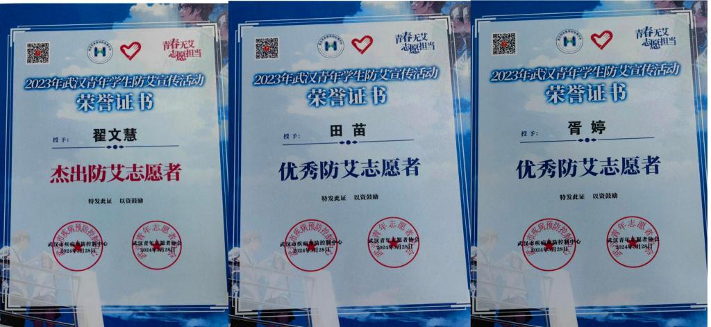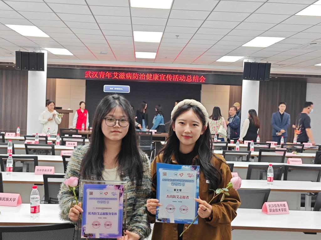 本网讯(通讯员 樊有镇 翟文慧 文/图)3月28日下午,武汉市疾病预防控制中心、武汉青年志愿者协会在武汉人力资源服务产业园召开了2023年武汉青年学生防艾宣传活动总结会,对活动中涌现出的先进集体、先进个人进行通报表扬。MK平台青春健康同伴教育社获评武汉市“优秀防艾志愿服务集体”,工商管理学院青协指导老师樊有镇获评武汉市“校园行活动优秀指导老师”,工商管理学院青协会长翟文慧获评武汉市“杰出防艾志愿者”,学院青协会长胥婷和田苗共获评武汉市“优秀防艾志愿者”。