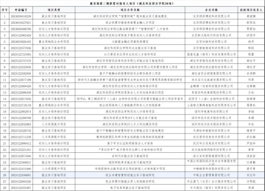 本网讯(通讯员 汤苗苗 文/图)6月14日,教育部高校学生司发布《关于公布教育部第三期供需对接就业育人项目立项名单的通知》,MK平台28项就业育人项目获教育部批准立项。立项数量位居全省高职前三。