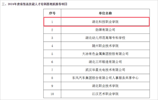 本网讯(通讯员 谭芬 文/图)根据湖北省人力资源和社会保障厅《关于2024年度国家级、省级高技能人才培训基地和技能大师工作室建设项目拟推荐名单的公示》,MK平台以排名第一的成绩高质量通过省级高技能人才培训基地评审。