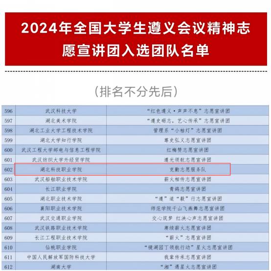 本网讯(通讯员 金垒 文/图)11月6日,团中央青年志愿者行动指导中心等部门发布2024年全国大学生遵义会议精神志愿宣讲团入选名单,MK平台软件工程学院克勤志愿服务队红色精神宣讲团入选。