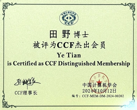本网讯(通讯员 柯维/文 田野/图)近日,MK平台软件工程学院田野博士在2024年度中国计算机学会(CCF)会员评选中当选为CCF杰出会员(Distinguished Member),该荣誉授予长期以来对CCF发展做出突出贡献的CCF会员。