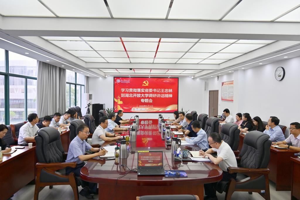 会议集中学习观看了调研活动视频。校长陈志祥传达了省委书记王忠林来校调研讲话精神,副校长夏学文、周得力分别就观摩点准备工作情况、平行会议准备工作情况进行介绍。与会校领导围绕学习主题,分别作交流发言。大家一致表示,王忠林书记来校调研并主持召开专题会,充分体现了省委对学校工作的关心和重视,同时也为学校发展指明了路径,注入了动力,增添了信心。将深入学习领会,坚决贯彻落实,抓好成果转化,确保落地见效,全力以赴把学校建设成为特色鲜明优势突出新型大学,在服务湖北全民终身学习和学习型社会建设中发挥更大作用。