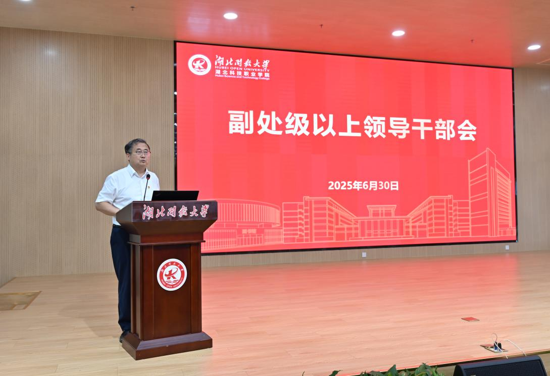 会上,校长陈志祥围绕“党建引领凝聚发展合力、融合发展激发改革动能、教学科研彰显师生风采”总结了“重大任务迎来新突破、三教协同开创新局面、各类项目实现新提升”三个方面取得的成绩,并布置了暑假期间的重点工作。他指出,全校各单位(部门)要坚持以上率下,在工作中,主动承担重点难点任务,在推进重大项目时,负责人要亲自挂帅,带领团队攻坚突破;要压实责任链条,加强重点工作的清单化管理与全过程跟踪,定期开展专项督查与效能评估,强化考核结果运用;要强化协同联动,树立“全校一盘棋” 意识,凝聚起全校上下心往一处想、劲往一处使的攻坚合力,确保各项重点任务在系统推进中取得突破。