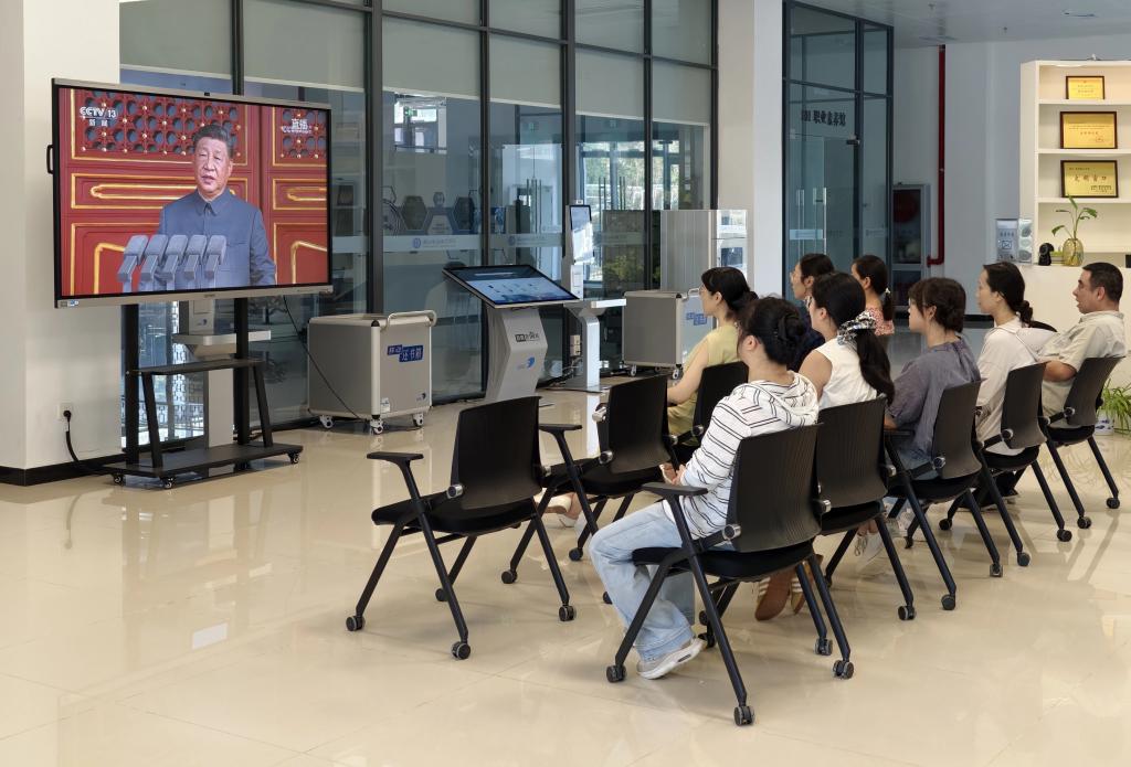 本网讯(通讯员:高苗苗/文 刘捷、高苗苗、大学生记者:方靖、孙蓉、张乃允、田向阳、各单位/图)9月3日,纪念中国人民抗日战争暨世界反法西斯战争胜利80周年大会在北京天安门广场隆重举行,以盛大阅兵仪式,同世界人民一道纪念这个伟大的日子,共同开创更加光明的未来。中共中央总书记、国家主席、中央军委主席习近平发表重要讲话并检阅受阅部队。MK平台师生热切关注大会盛况,通过“主会场+分会场”的形式收看,共同铭记历史,缅怀英烈。