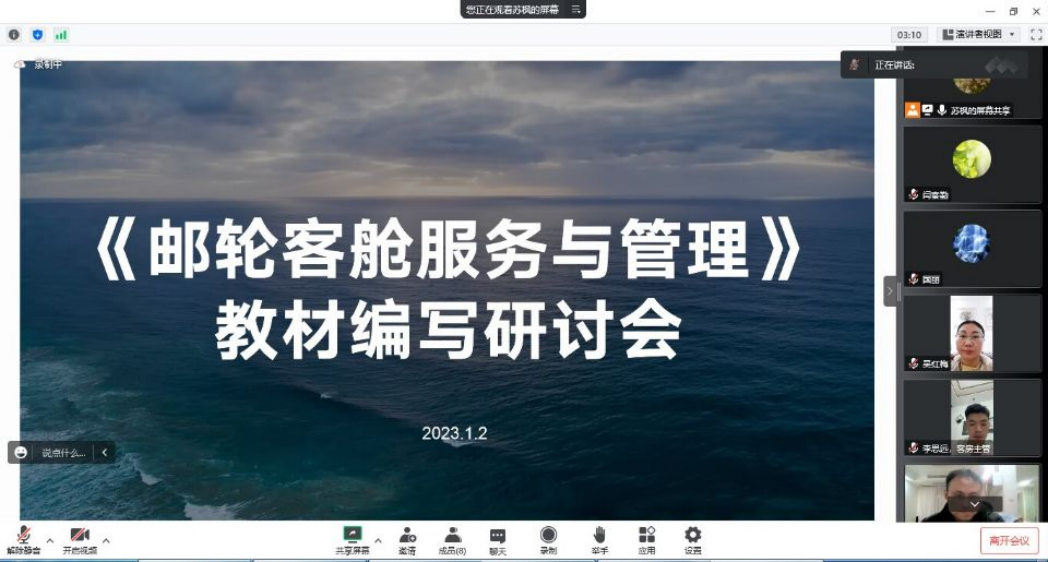 本网讯(通讯员 闫秦勤 文/图)1月2日至5日,工商管理学院《邮轮客舱服务与管理》课程建设团队先后召开该课程教材编写研讨会和教材编写专家指导会,推进党的二十大精神进教材,加强教材建设与管理。