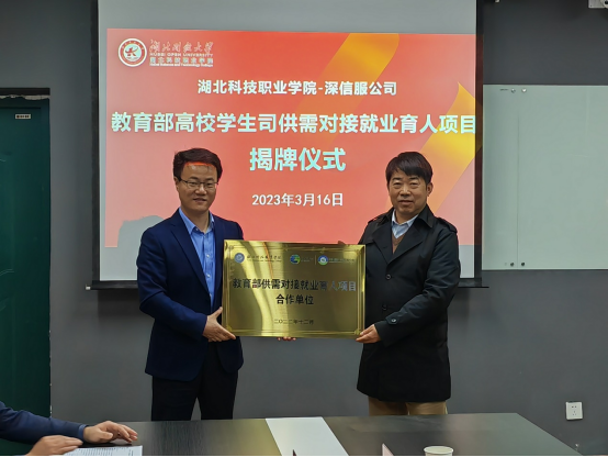 仪式上,涂家海、彭杰分别代表电信工程学院和深信服公司发表了致辞。涂家海和彭杰签订了校企合作框架协议,共同为教育部供需对接就业育人项目合作单位和深信服就业服务中心揭牌。