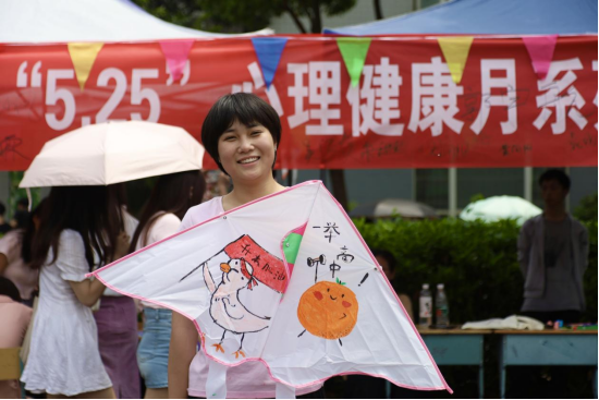 学生们纷纷发挥奇思妙想,希望绘出一个独特的风筝。有的学生为了保证绘画质量,耐心地用铅笔打稿;有的学生为了保证绘画的层次性,将颜料进行各种“排列组合”;还有的学生在风筝上题字,给风筝增加诗意……在一涂一抹中,大家不仅绘成了风筝,也绘出了好心情。短短的几个小时内,学生们卸下压力,将心思聚焦于手中的风筝和缤纷的色彩中,专注而快乐,原本单调的风筝都穿上了美丽的“花衣”。
