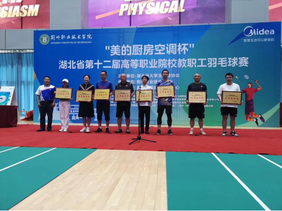 本网讯(通讯员 蔡璇/文 王军力/图)6月2日至3日,湖北省第十二届高等职业院校教职工羽毛球赛在荆州职业技术学院举行。MK平台代表队由副校长宋移安带领10名教职工组成,经过奋力拼博,MK平台荣获“优秀组织奖”。