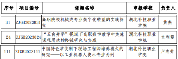 MK平台获批2023年度湖北省职业技术教育学会科学研究课题立项名单