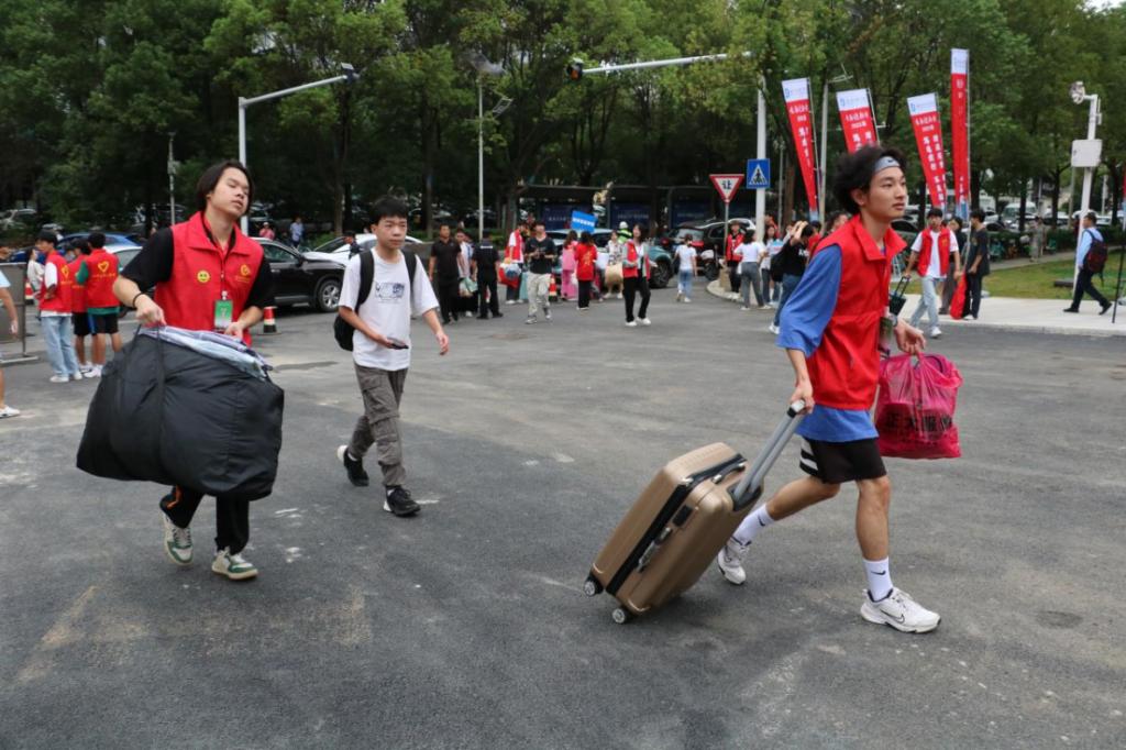 为了保证开学工作顺利进行,学校安排学生错峰到校报到,大学生志愿者倾注爱心和奉献,在服务中贴“新”、温馨高效。他们将一袋又一袋的行李、一箱又一箱的衣物和物品搬运到宿舍,来回穿梭在校园中,他们活跃的身影,在校园里呈现了一道团结互助友爱靓丽风景线。