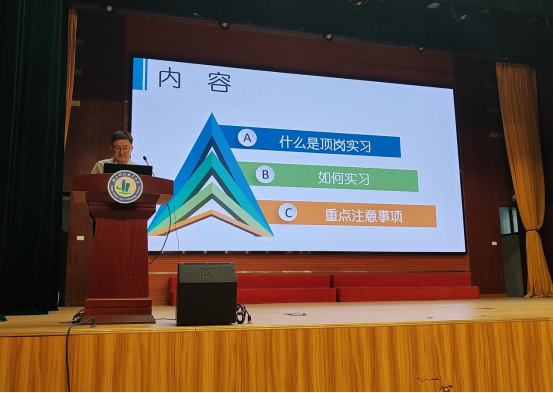 动员会上,教学办负责人对国家相关文件、专业人才培养方案进行了解读,围绕实习目的、实习流程、实习要求等方面介绍了顶岗实习相关背景和意义,重点介绍了顶岗实习平台的使用方法和注意事项,要求同学们及时做好实习的准备。