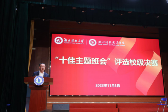 本网讯(通讯员 邹世康 杨星星/文 胡鑫/图)为推进“时代新人铸魂工程”,落实“立德树人”根本任务,进一步发挥主题班会思想政治教育重要作用,11月3日下午,“十佳主题班会”评选校级决赛在关山校区学术报告厅举行,校党委常委李宜兵全程观看并指导大赛,宣传部、学工部、马克思主义学院负责人,各学院党总支书记担任大赛评委,全体专兼职辅导员到场观摩学习。