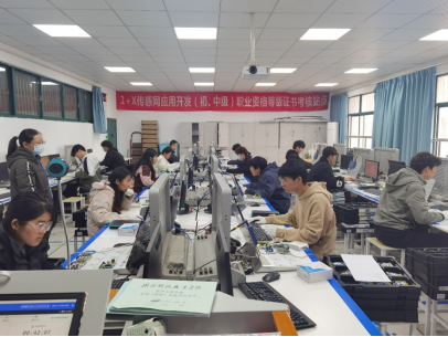 今年“1+X”传感网应用开发(中级)职业技能等级证书考试与以往相比,理论知识考核比例由30%提高至40%,实操题增加了新模块,职业素养要求提升。学校高度重视“1+X”证书认证工作,考试由职院教务处综合协调、相关部门通力配合,软件工程学院物联网应用技术专业依据2023年考核站点考务手册的相关要求具体实施,完成了考前培训、环境测试、考场布置、考务安排等各项工作,保障了本次考核的严谨有序进行。
