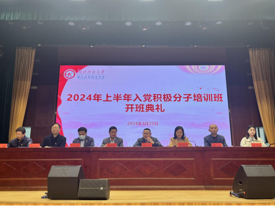 仪式在庄严的国歌声中拉开序幕。何平代表学校党委向全体参训学员表示欢迎,他表示:“参加此次入党积极分子培训,是一次难得的学习机会,更是一次难得的人生经历,还是一次政治思想上的启蒙和洗礼。”他对全体参训学员提出三点要求:一是提高站位,在深化认识上下功夫。全面、系统地掌握党的基本理论知识,深入学习习近平新时代中国特色社会主义思想和党的二十大精神,进一步端正入党动机,争取早日加入中国共产党。二是善于学习,在学思结合上下功夫。掌握学习方法,突出学习重点,进一步坚定理想信念,弥补精神之“钙”,以实际行动践行合格党员的要求。三是端正态度,在务求实效上下功夫。通过静下心学、严守纪律学、联系实际学,切实做到学有所思、学有所得、学有所悟、学有所成。