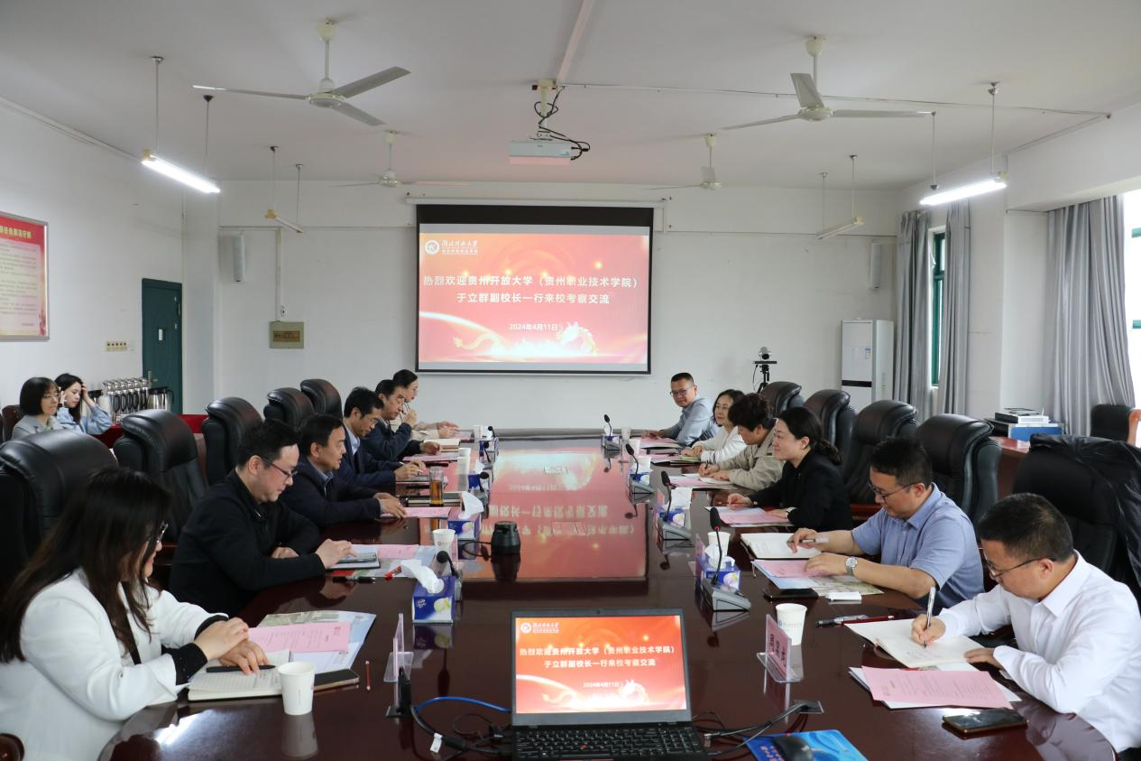 本网讯(通讯员 黄晨雨/文 李贺刚/图)4月11日,贵州开放大学(贵州职业技术学院)副校长于立群一行来MK平台考察交流。副校长宋移安出席交流座谈会。