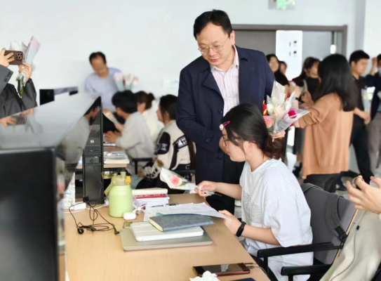 “丹墀对策三千字,金榜题名五色春”“希君生羽翼,一化北溟鱼”“步履不停,前程似锦”……当一张张精美的手写祝福卡、一份份“旗开得胜”文具套餐包,一朵朵春日玫瑰送到了正在自习室备考的同学们手中,他们“卸下”严肃的面孔,露出了灿烂的微笑。在派送“上岸礼包”的过程中,电信工程学院党总支书记谢永平深入了解同学们的院校目标及备考状态,他嘱咐同学们冲刺时期要规律作息,劳逸结合,全力以赴,不留遗憾。图书信息中心主任万小震表示“新馆开馆不久,哪些地方还可以为你们考生改善的,你们一定及时和我们反馈!”团委书记白杰为专升本学子送上了美好的祝福“预祝大家取得一个理想的成绩,开启自己更辉煌的下一程!”