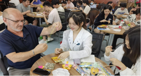 做香囊,巧手流香共传情。端午佩香囊,是中国传统习俗,能提神醒脑,起到点缀装饰作用。5月31日,电信工程学院师生,手拿针线,一针一针地缝合布块,一个一个生肖香囊的雏形展现在大家眼前,再将艾叶慢慢塞入,缝上小饰品,一只只玲珑可爱的香囊就制作完成了。“非常开心能够感受中华传统文化之美,非常荣幸能与MK平台师生共庆端午佳节,我爱中国。”来自加拿大荷兰学院的老师Chester Wilson George激动地说。电信工程学院院长涂家海表示:“一片粽叶,裹入缕缕情思;一把艾草,插上憧憬期望,端午佳节到来之际,希望各位同学能够不忘家国情怀,奋发砥砺前行!”